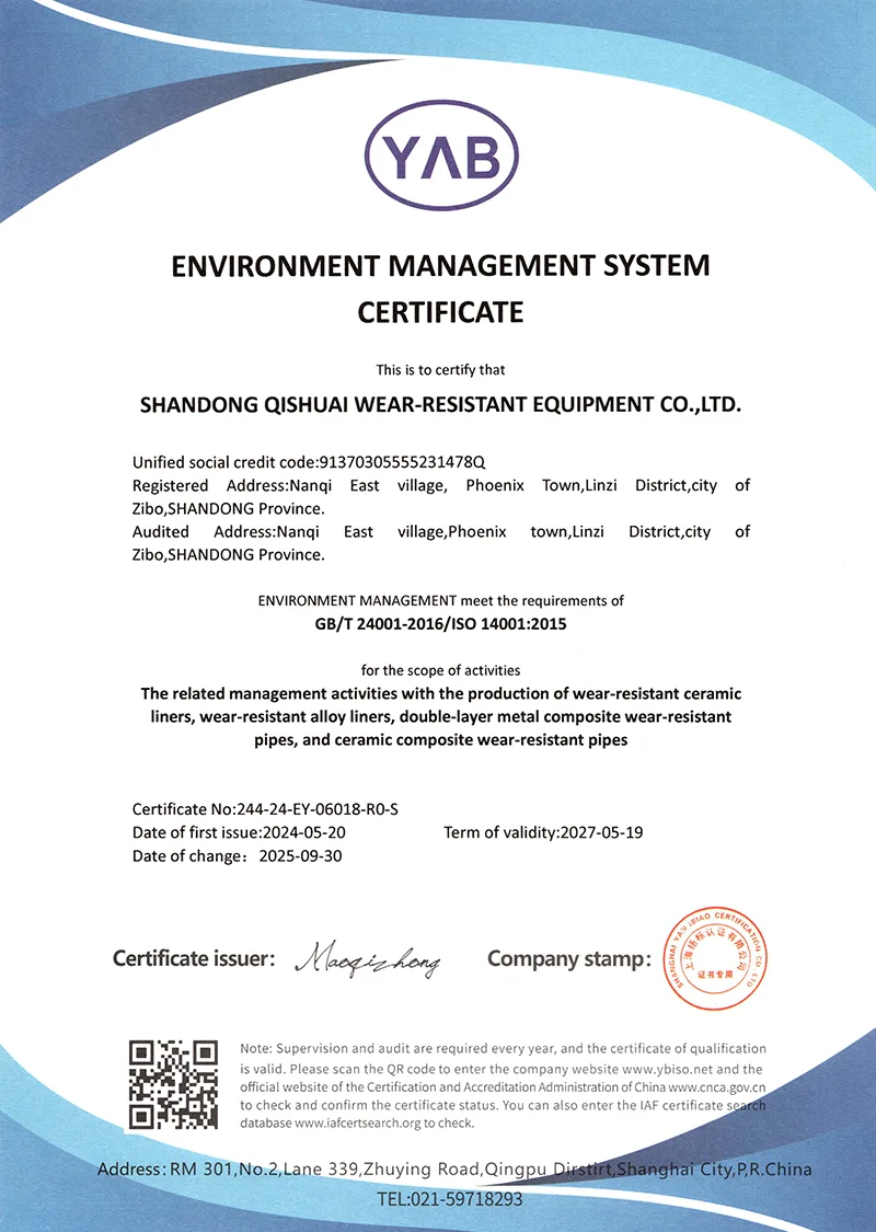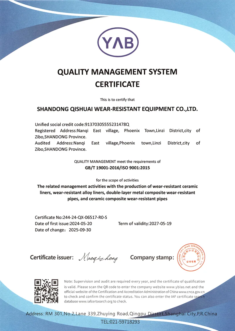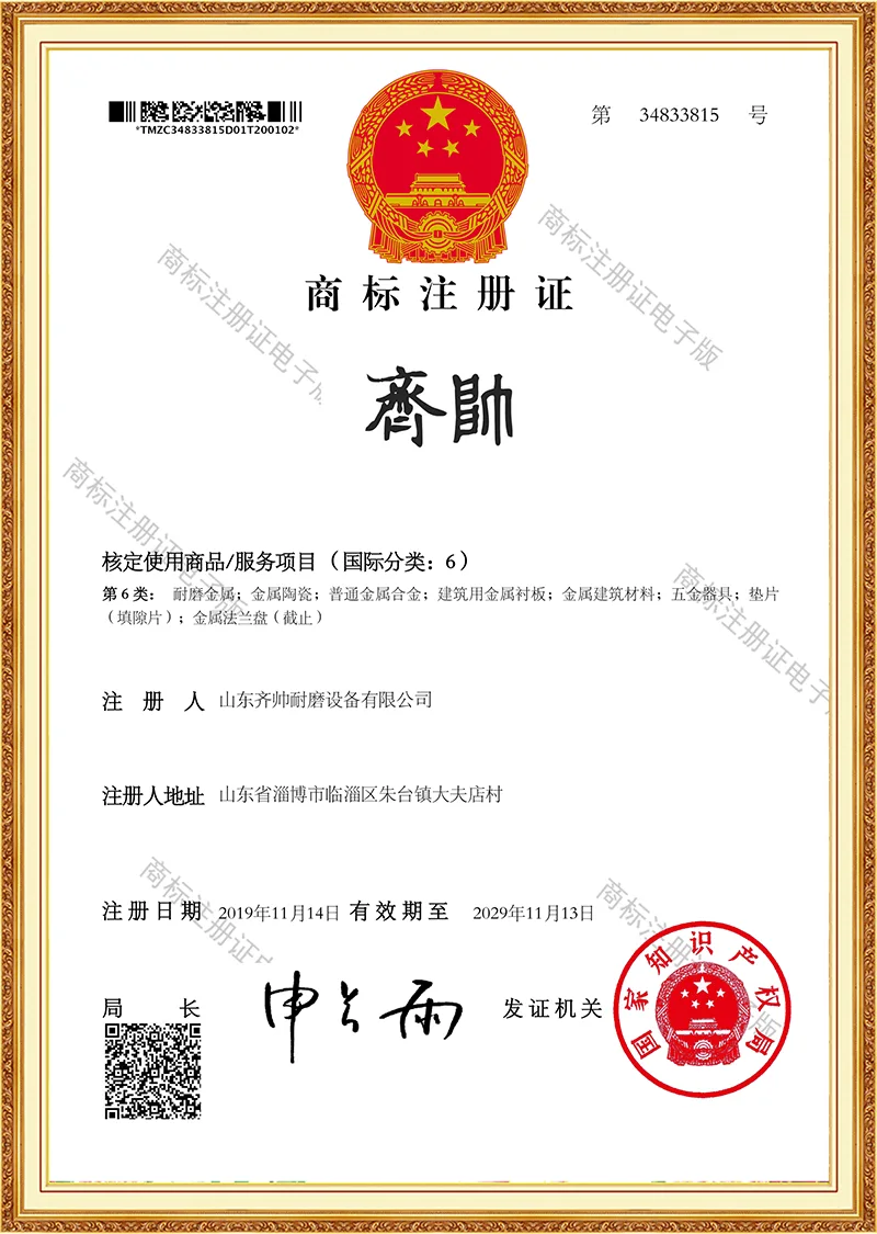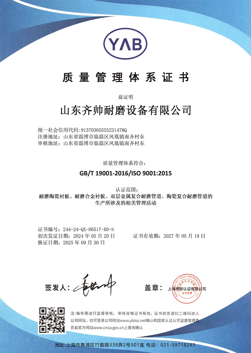 Inoltre, miglioriamo costantemente il nostro livello e realizziamo attivamente l'innovazione. L'azienda ha sviluppato una serie di materiali e tecnologie resistenti all'usura con diritti di proprietà intellettuale e ha ricevuto buone valutazioni da parte degli utenti e ha anche ottenuto ricchi rendimenti. Aderiamo sempre al concetto di design di elevata resistenza all'usura e lunga durata. Per prima cosa scegliamo materiali ad alte prestazioni come la lega di carburo di cromo e la ceramica di allumina ad alta densità. Principi di progettazione: adattamento alle condizioni di lavoro, alte prestazioni, sicurezza e affidabilità. Se hai un problema mondiale che Krupp non può risolvere, vieni a Qishuai!